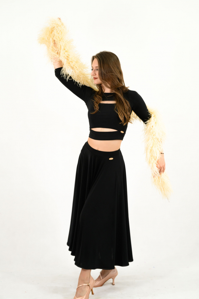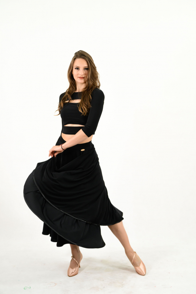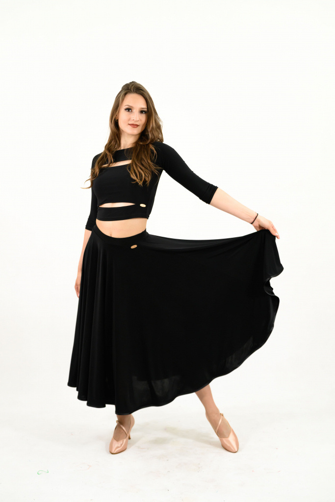 Dámska kruhová tréningová sukňa určená na štandardné tance. Farebné prevedenie podľa vlastného výberu.