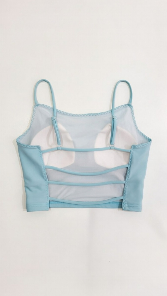 Dámske bledo modré tielko na chrbte s pásikmi.