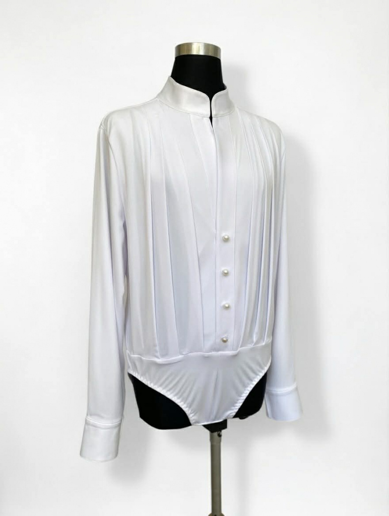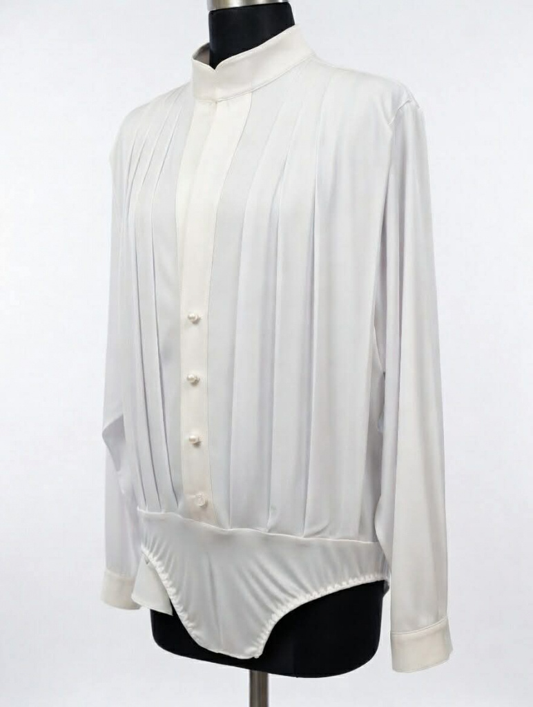 táto košeľa je efektné pôsobiaca vďaka svojej prednej časti, kde efekt netopierieho strihu tvoria záhyby